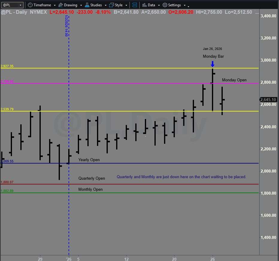 Here is Platinum futures, on Tuesday Jan 27, 2026.